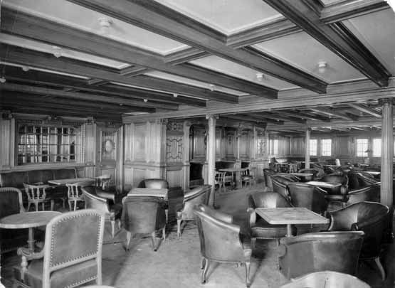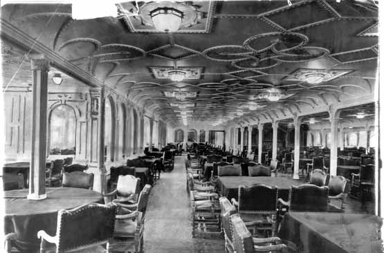 از سالنهای غذاخوری تایتانیک؛ این کشتی، یکی از مجللترین کشتیهای زمان خود به شمار میآمد.
